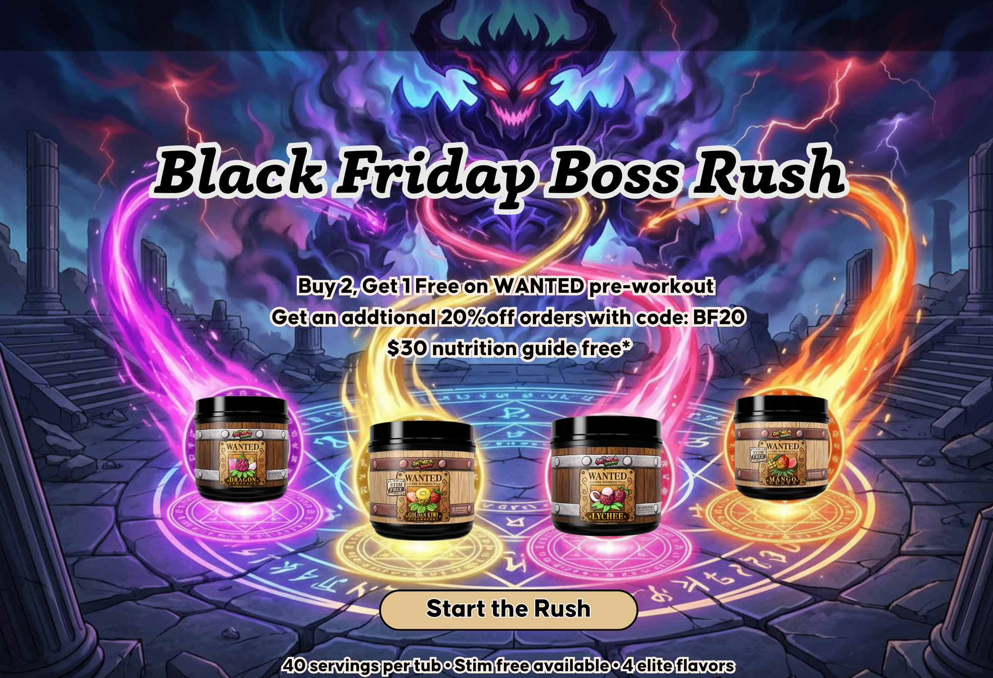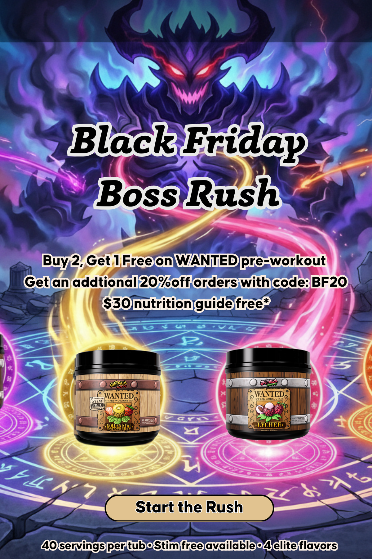 Delicious tropical flavors designed to help you tap into the strength and focus of your inner anime protagonist, powering through every workout with ease.